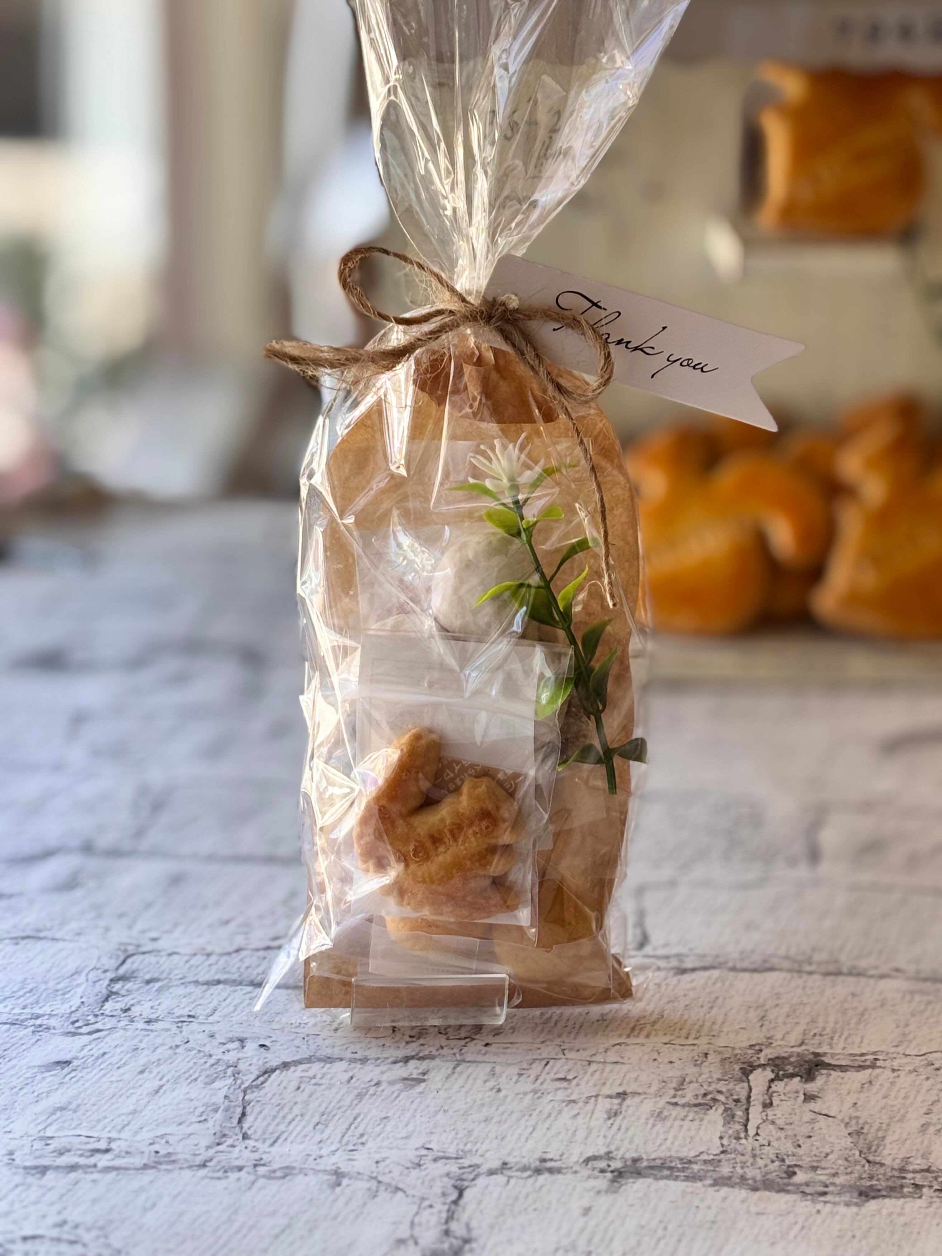 Petit Merci(プチメルシー)バッグSは、心温まるリスのクッキーと数種のクッキーが入った愛らしいギフトです。特別な日の贈り物や感謝の気持ちを伝えるにぴったりのアイテムとなっています。