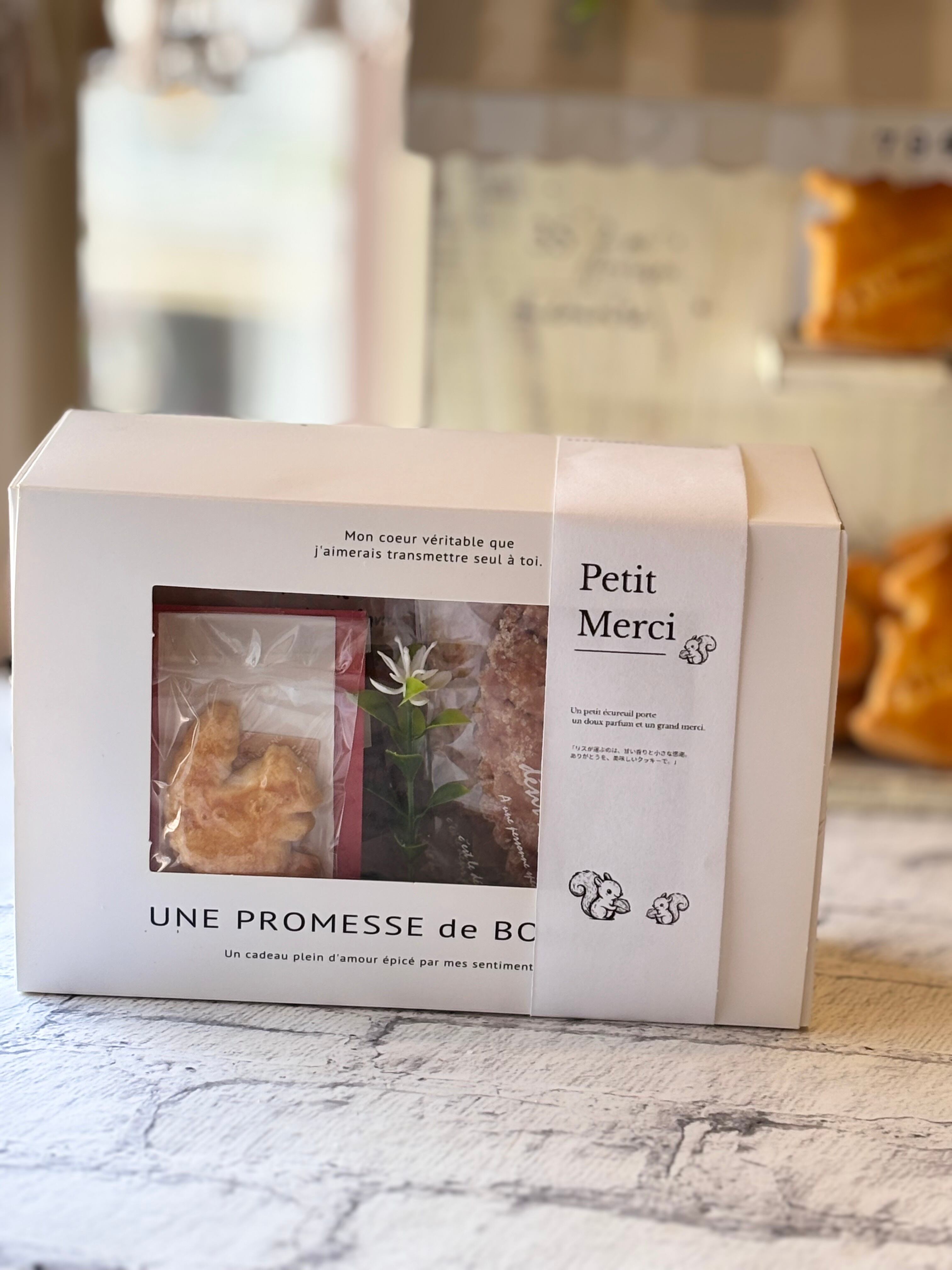 Petit Merci(プチメルシー)バッグSは、心温まるリスのクッキーと数種のクッキーが入った愛らしいギフトです。特別な日の贈り物や感謝の気持ちを伝えるにぴったりのアイテムとなっています。